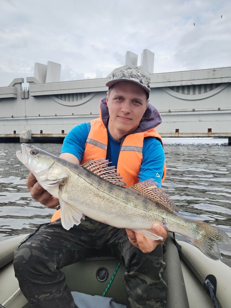Всем привет, как дела? Как настроение?) Максимально спонтанная рыбалка получилась. В этот день я пораньше освободился с работы и уже в час дня был дома. Только я приготовил покушать и сел за стол, как звонит мне мой давний товарищ Антон. Говорит: я прямо сейчас еду на рыбалку, место в лодке есть, погнали?) Конечно я долго не думал и почти сразу согласился) В 15 часов мы уже были на воде. От Ломоносова до створов долетели за минут 20... Поклёвки долго себя ждать не заставили и уже в 17 часов я отпустил первого пограничного судака около 37см. Цель была попробовать научить Антона ловить судаков и понять что он делает не так. Так как он сколько пытался.. так ничего дельного и не поймал. Но это было до этой рыбалки! Фото выше подтверждает, что у него всё получилось) С приманкой всё так-же. Я исправно ловил на рачков и ларву, а Антон перебирал весь свой чемодан с резиной. Но у него не клевало... В какой-то момент я отдал ему свой спиннинг, что бы он хотя-бы поймал на неё. Но в итоге он пойма