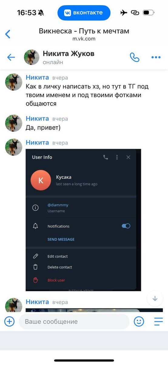 День начинается с фейков! 😇 Хаааа, как же они меня задолбали!! То в ВК куча, то в Инсте, но самое проблемное, это в ТГ! Потому что в Телеграме чего только не пишут от моего лица, чего только не предлагают... А после покупки услуги либо кидают на деньги, либо отправляют чужие нюдсы без лица, а человек думает, что это мои 🙂 И ладно бы только это! Один чувак писал мне, что видел мой, простите , ан*л 🤦♂️ Пришлось ещё ему потом доказывать, что это не я, и что я такое не продаю. А ещё бывает пишут мне, спрашивают, почему я им постоянно написывала, а потом взяла деньги и заблокировала 🤦♂️🤦♂️ То есть из-за этих фейков меня не только порнушницей выставляют, но и мошенницей 👌👌👌 Проблема в том, что я хз, как удалить этого пользователя в телеграме, потому что это именно пользователь, а не группа/бот 🙂 Ты не знаешь, как это сделать? Напиши мне, пожалуйста, здесь или в Телеграм-канале под этим постом, спасибо!