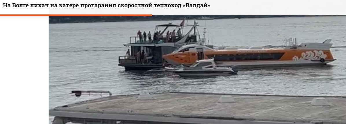 В СМИ вчера обсуждалось столкновение на Волге. Журналисты, особо не вникая в детали, писали о лихаче на моторке, который протаранил "Валдай" (скрин заголовка ниже).