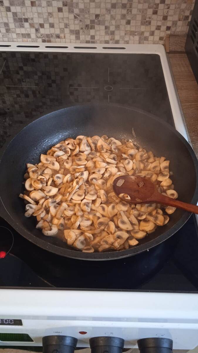 У меня дома всегда есть фарш, ведь я знаю и умею готовить из него множество блюд! Например, вот такие гнезда с грибами. Готовить их очень быстро, а получаются они очень вкусными! Да, кажется, что они занимают много времени, но на самом деле подготовка быстрая, а пока жарятся грибы, замешивается фарш. Попробуйте, и они станут вашим любимым вариантом ужина. Для них нужно: Для начала нужно помыть и мелко нарезать шампиньоны. У меня дома всегда есть уже подготовленные грибы, я их замораживаю. Затем нужно мелко нашинковать лук и обжарить на растительном масле с грибами Затем к грибам с луком добавить соль и сметану. Хорошо перемешать и снять с огня. Фарш разморозить, добавить к нему яйцо, майонез, соль, приправу и чеснок через чеснокодавку. Хорошо перемешать. Противень застелить пергаментом, выложить фарш в виде гнезд и заполнить грибами. У меня на этот объем продуктов получается шесть гнезд. Сверху присыпать сыром, на тертым на терке. Запекать гнезда в духовке при 180° до золотистого