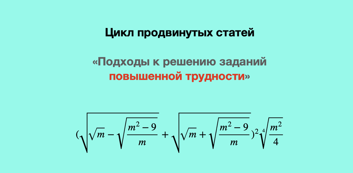 Здравствуйте! Сегодня разберем небольшой примерчик с обложки. Я поделюсь с вами ходом решения и рассуждениями, которым можно следовать, чтобы понимать, с чего начать разваривать эту кашу в обратную сторону. Первое, с чего нужно начать - проинспектировать на предмет формул сокращенного умножения. Так как квадрат и корень, вроде как, взаимно уничтожаются. В первой скобке аж 6 подкоренных выражений. Смотрим от меньшего к большему. √m - очевидно, не сворачивается в полный квадрат. m^2-9 - это разность квадратов, а поочередно извлечь корень из каждого слагаемого НЕЛЬЗЯ. В общем, здесь всё понятно, выручает только то, что первая скобка в квадрате. Этим мы и будем пользоваться. Но сначала сделаем чисто символическую замену. Сначала рассмотрим только первую скобку. Выполним вычисления по действиям, так скажем: В цветных квадратных скобках я выполняю побочные действия или указываю, какие именно свойства применяются. Приводим к общему знаменателю так как впереди нас еще ждет умножение, а умн