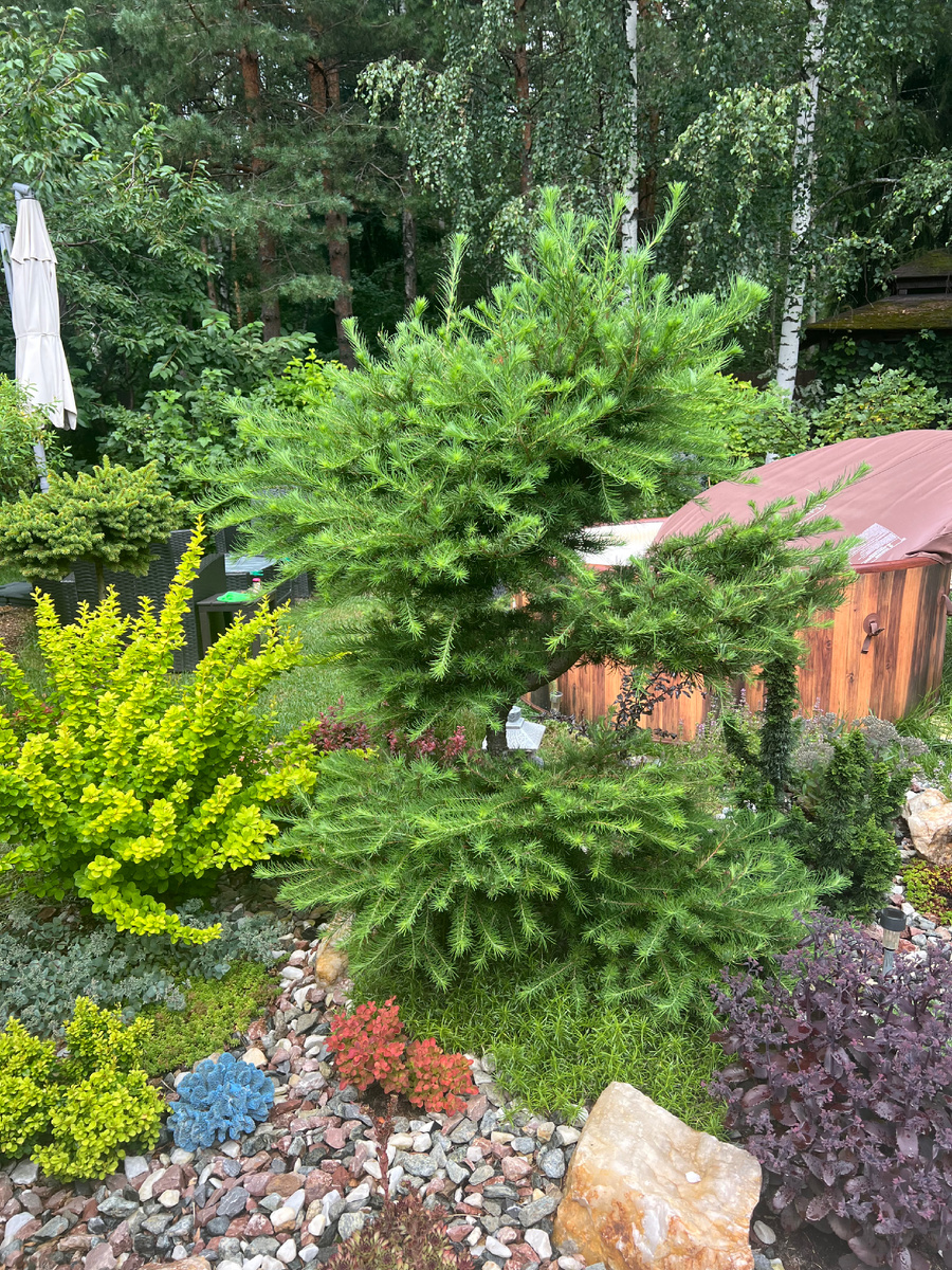 Каждый год говорю себе, что не буду ке трогать, пусть себе растет и тд. И каждый год приходится стричь. Иначе начинает напоминать лешего в середине рокария. Она сформирована красиво, но достаточно часто оставлены ветки на своле, поэтому их получается много. А лиственницы растут очень и очень быстро. И не только в длину, еще и в верх и а ширину, отрастает очень быстро, стремится к своему природному виду крупного дерева. В прошлом году оставила стрижку на август, а он был очень солнечным и жарким , постричь не успела, осенью не стригу уже. И за полтора сезона моя лиственница с радостью обросла до лешего. Стоит пропустить одну корректирующую стрижку и потом приходится ровнять не ежегодные приросты, а уже резать одеревеневшие стволики. Проредила сначала нижние ряды. Фотографирую, отхожу в сторону, смотрю со всех сторон. На фото почему-то виднее все огрехи Потом иду стричь самый верх. Вот и фигура уже нарисовалась. Нам бы так, постриг лишнее и красотка сразу)) К таким формам подхожу несколь