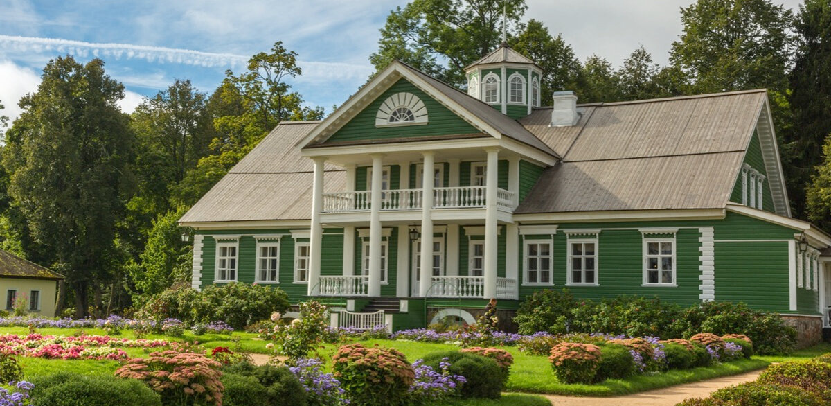 Впервые Пушкин посетил Михайловское в 1817 году, а с 1824 по 1826 он жил в родовом поместье во время ссылки. Здесь он написал около ста произведений, среди которых «Борис Годунов», главы из «Евгения Онегина», поэма «Граф Нулин». В 1918 году имение было разграблено, но спустя четыре года восстановлено и обрело статус музея-заповедника.