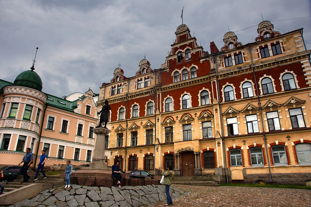 Перейдя по мосту, мы начали осмотр исторической части города с Крепостной улицы. Здесь находится площадь старой Ратуши, дом Векрута и памятник Торгильсу Кнутссону — основателю Выборгского замка. Именно здесь можно прочувствовать атмосферу средневекового европейского города.