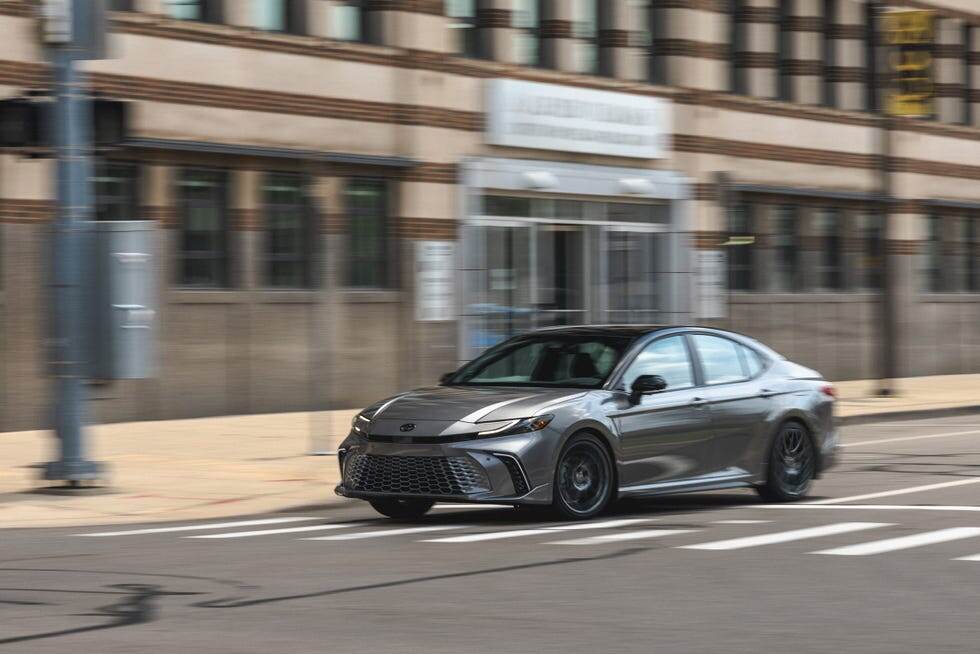 Если вы не взглянете на переднюю часть и изящную пасть Camry 2025 года, ее легко можно принять за предыдущую модель, которую она отражает практически во всех деталях. Как и прежде, комплектации SE и XSE заявлены как более спортивные версии с черными акцентами в решетке радиатора и более отзывчивым шасси по сравнению с хромированной отделкой LE и XLE и более мягкой настройкой.