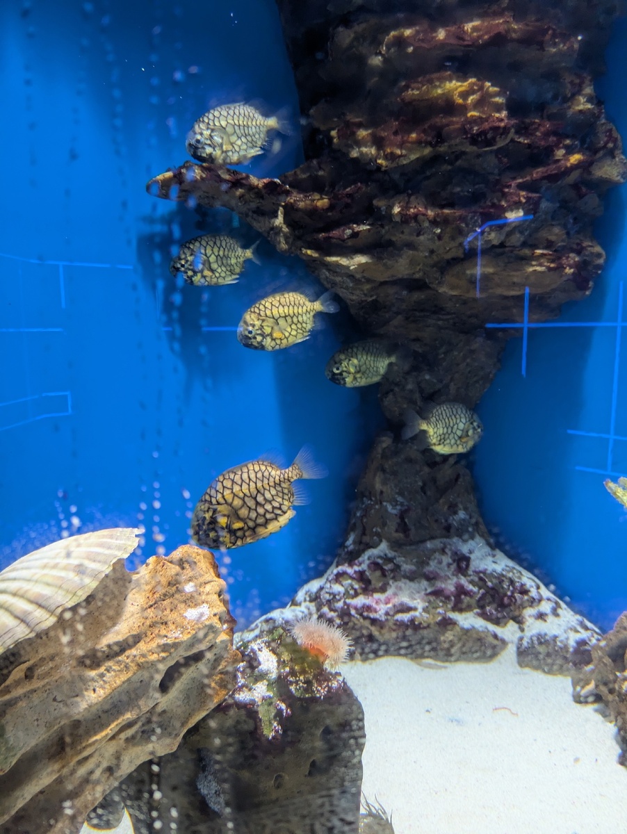 Каждый аквариум снабжен табличкой с информацией о его обитателях.