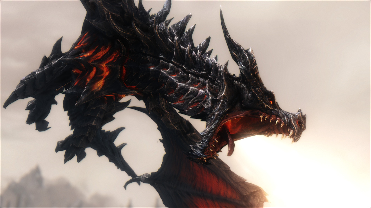 "В Свитках сказано так — когда брат брату враг, взмоют в стуже два мрачных крыла! Алдуин, Бич Монархов, тень давних веков, жадность чья бы весь мир пожрала!" Этот чёрный дракон — первенец Акатоша (Бог-Дракон Времени, также Великий Дракон Времени, Дракон-Призрак — главное Божество пантеона Девяти и покровитель Сиродильской империи, воплощающий в себе стойкость, неуязвимость и неизменную законность) Его имя на языке дов — alduin, что расшифровывается, как «Al» — Разрушитель, «Du» — Пожирающий, «In» — Хозяин. Его прозвище «Пожиратель Мира» происходит из нордских мифов, что описывают его как ужасную, яростную огненную бурю, которая разрушила предыдущий мир, чтобы начался этот. По этой причине норды видят в нём того самого Мироеда, бога времени, являющегося одновременно творцом мира и его разрушителем. Однако Алдуин не проявляет стремления к уничтожению мира, а только стремится править им, как в древние времена. Для того, чтобы набрать мощь, он питается душами мёртвых нордов, которые из-за