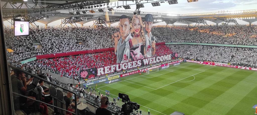 Во время матча 1-го тура чемпионата Польши, завершившегося победой варшавской команды (2:0), ультрас «Легии» вывесили баннер с надписью на английском языке: «Беженцы, добро пожаловать». На полотне были изображены двое мужчин с бейсбольной битой и молотком и женщина в традиционном костюме с головой поросенка в руках. Как отмечает Sport.pl, акция фанатов была направлена против притока в Польшу беженцев из стран Ближнего Востока и Африки – свиная голова на баннере отсылает к исламу, нормы которого запрещают употребление свинины. Также сообщается, что во время матча болельщики скандировали нецензурные кричалки о беженцах. По данным Института социального страхования (ZUS), число зарегистрированных иностранцев в Польше на конец 2023 года составило более 1,1 миллиона человек. Фото: sport.pl Фэнтези РПЛ-2024/25 уже на Спортсе! Успевайте собрать команду