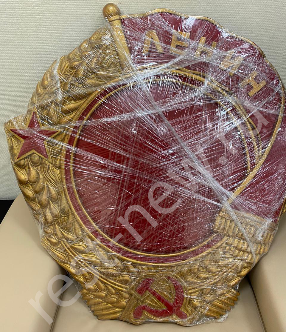 И что только не приносят в реставрацию. Человеческая фантазия безгранична. В этот раз лечим зеркальную раму в виде огромного ордена Ленина, но без оного. При падении зеркало разбилось, а в раме образовался перелом со смещением. Склейка получилась хилая, для надёжности вклеил усиливающий конструкцию имплант из толстой фанеры. Зеркальные мастерские отказывали в изготовлении зеркала круглой формы с закавыкой из-за уголка знамени. Пришлось всё подрезать до правильной формы круга. При окраске тыла надлежало сохранить памятную надпись. Золото потускнело – освежим. Можно любоваться Ленинцами.