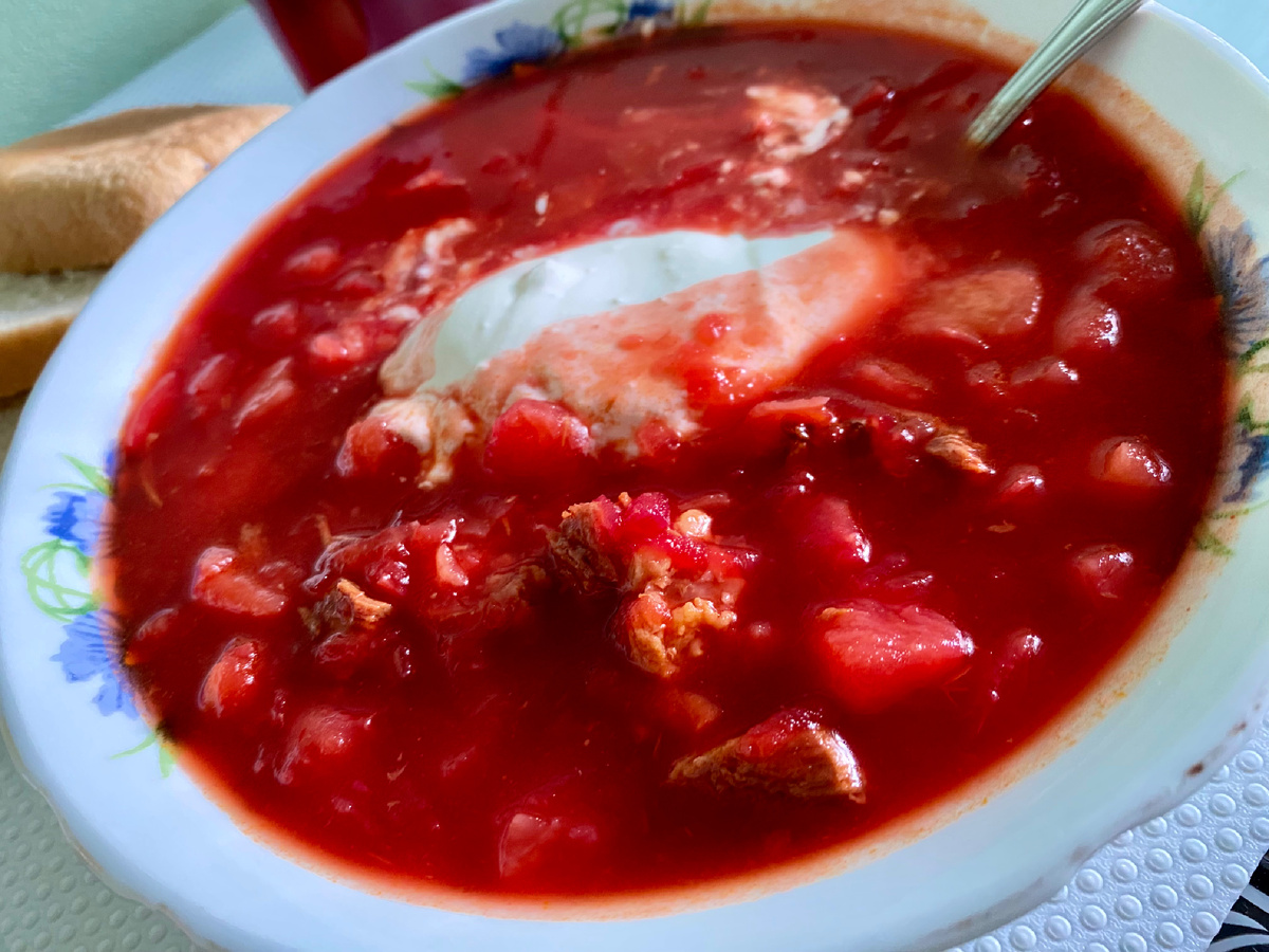 Всем доброго времени суток 🔥 Мы уже давно готовим супы без зажарки и борщ в том числе. На мой взгляд, от этого он не проигрывает во вкусе, а даже наоборот. Плюс, так он полезнее😊 Итак, если Вы тоже не любите зажарку, этот рецепт для Вас. Что нам понадобится на кастрюлю объёмом 5 литров: ⁃ Говядина (любая часть, у нас мякоть) - 800 грамм; ⁃ Картошка - 600 грамм (3 крупные штуки); ⁃ Морковь натёртая - горсточка; ⁃ Капуста белокочанная - примерно 100 грамм; ⁃ Свёкла - 300 грамм (одна крупная); ⁃ Томатная паста - 180 грамм; ⁃ Соль и сахар - по вкусу. Отвариваем мясо и свёклу до готовности. Чем наваристее будет бульон, тем вкуснее получится борщ. Мы варим говядину около трёх часов. Не забудьте посолить бульон по вкусу! Картошку чистим и нарезаем кубиками. Вынимаем готовое мясо из бульона и отправляем туда картошку. Капусту шинкуем удобным способом. Морковь натираем на крупной тёрке. Я обычно замораживаю капусту и морковь, поэтому в этот раз использовала замороженные овощи. Со