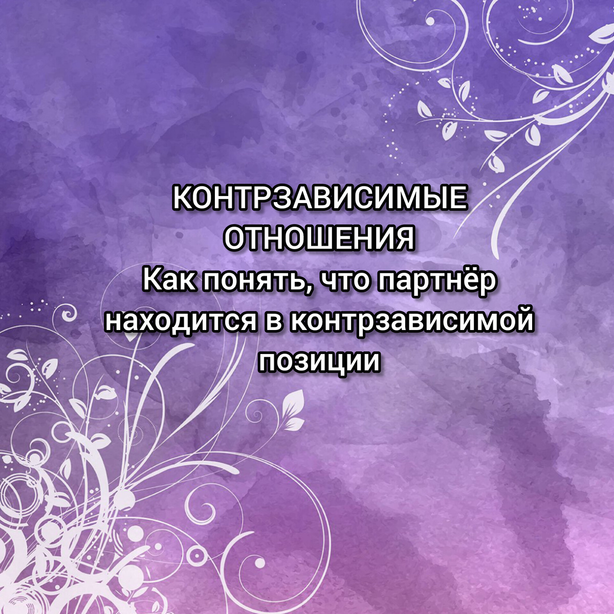Мы много говорим о созависимым отношениях, но не разу не говорили о контрзависимых. Что это за понятие, давайте разберемся вместе. ⠀ Наверняка Вы хоть раз слышали или испытывали на себе такую картину: один из партнёров старается проявлять свои эмоции, стремиться делать все, для того, чтобы угодить второму, а второй как был, так и остается холоден к первому. Но стоит только первому начать отдаляться, как второй из партнёров начинает "ухаживать" (дарить подарки, цветы, делать комплименты, устраивать романтические вечера и так далее). Как говорят в народе: один любит, а второй позволяет себя любить. Так вот позиция второго партнёра - контрзависимая. ⠀ А теперь, давайте подробнее пробежимся по списку фраз, которые могут говорить люди, занимающие контрзависимых отношения: ⠀ ✔️ Я не очень эмоционален, не люблю телячьи нежности. ⠀ ✔️ Я - как кошка, гуляю сама по себе. Задыхаюсь в отношениях, мне иногда необходимо отдыхать от партнёра и отношений. ⠀ ✔️ У меня много дел, задач, работы, встреч
