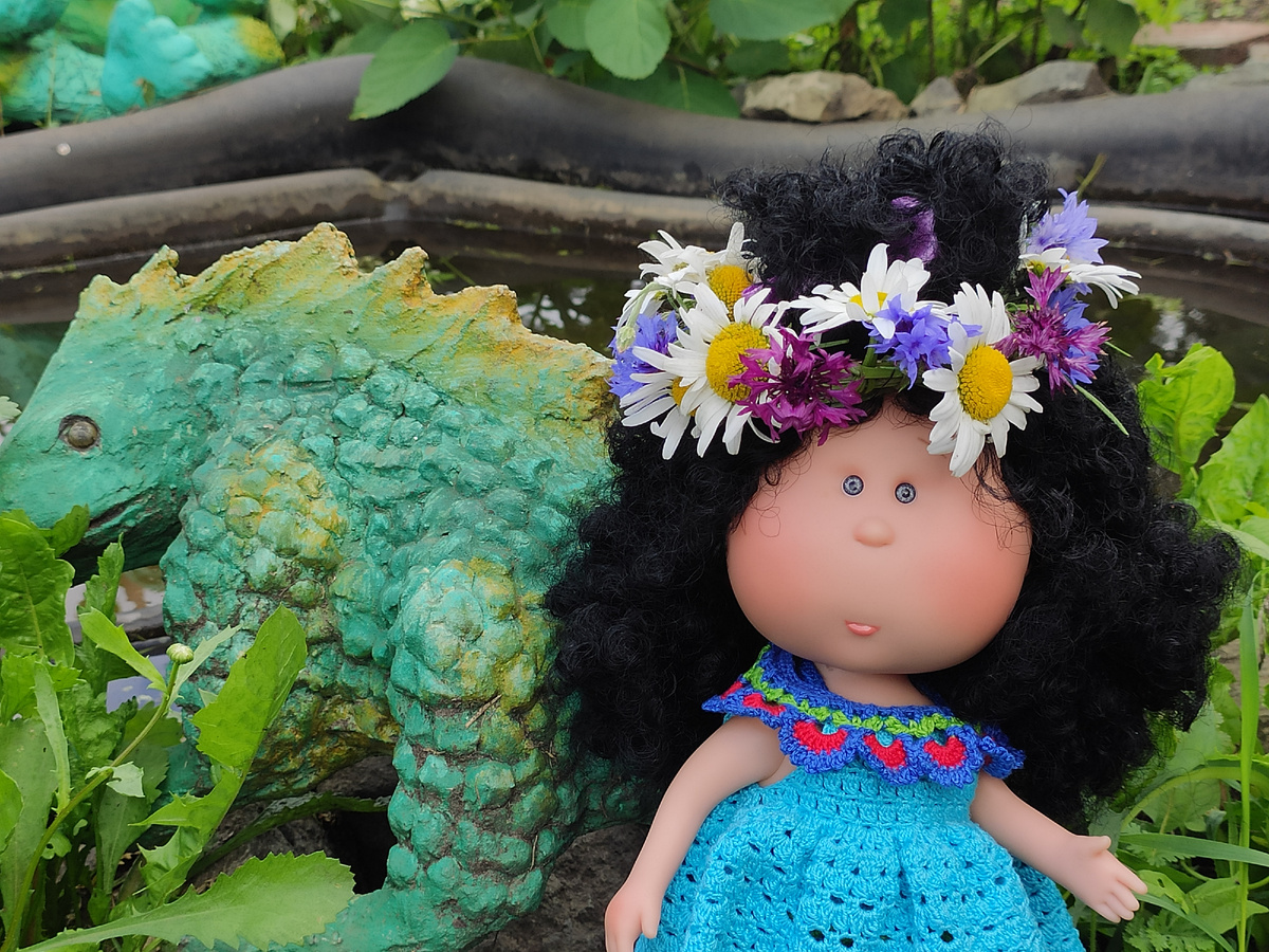 Приглашаем вас в гости. И пока еще не отцвели ромашки и васильки хотим сплести веночек для куколок. Цветут ромашки на лугу. В траве краснеет мак. Из них венок сплести могу Вот так, вот так, вот так. Давай вдвоём сплетём венок, Ведь это же пустяк. Вплетай за кашкою вьюнок Вот так, вот так, вот так. За незабудкой голубой Мы спустимся в овраг, И клевер мы вплетём с тобой Вот так, вот так, вот так. Сорвем последний василёк, С дорожки сделав шаг, — И можно примерять венок Вот так, вот так, вот так. Александрова Зинаида. Вот так : А потом веночек достался жирафу Пока пока. Как вам наш веночек?