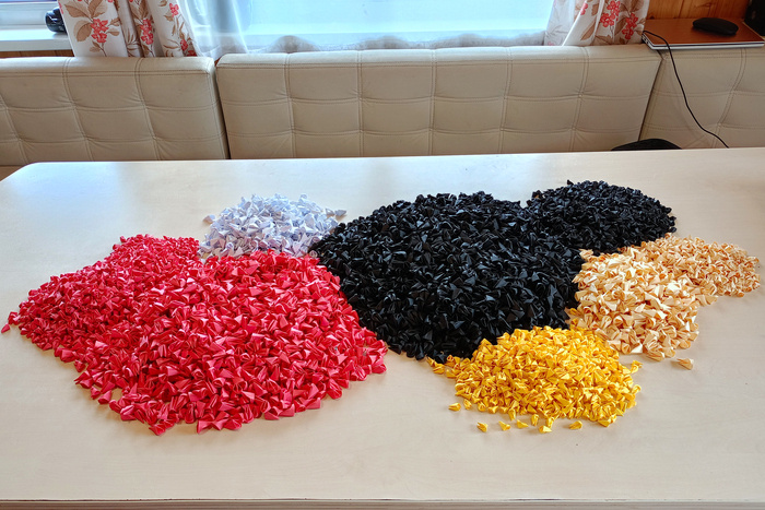 Привет! Сегодня покажу процесс сборки фигурок Микки Мауса и его подружки Минни в технике модульного оригами. Для указанных моделей мне понадобилось 9200 модулей. Данные модули я обычно делаю по дороге на работу, когда еду в метро или электричке. Модули складываю из бумаги, порезанной на маленькие прямоугольники. На следующем фото сделал небольшую схему процесса сборки модуля. Начинаю сборку туловища Микки Мауса. Плавно перехожу на шорты Микки. Туловище и шорты готовы, начинается сборка головы. Процесс сборки голов Микки и Минни. Делаю ноги для Микки. И начинаю делать туловище Минни Маус. Плавно перехожу к юбочке маленькой мыши. В мастерской склеиваю ноги, туловище и юбочку Минни. Начинаю процесс сборки ушей наших мышек. Не забываю про бантик Минни. Перехожу к сборке рук Микки и Минни. Ох, целых 16 пальцев надо сделать. Ну и финальный результат. Пора попозировать в лесу Ленинградской области! Суммарно на данные модели ушло около 200 листов формата А4. Спасибо большое за внимание надеюсь