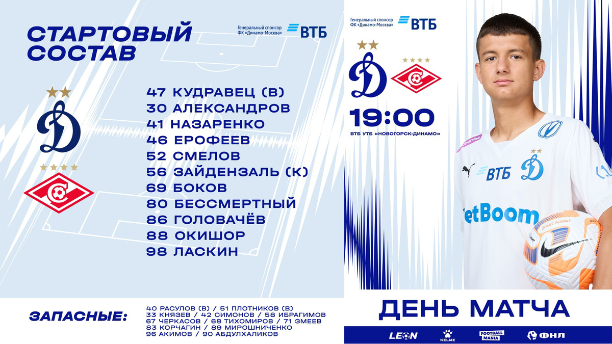 Стартовый состав Динамо-2 на матч со Спартаком-2