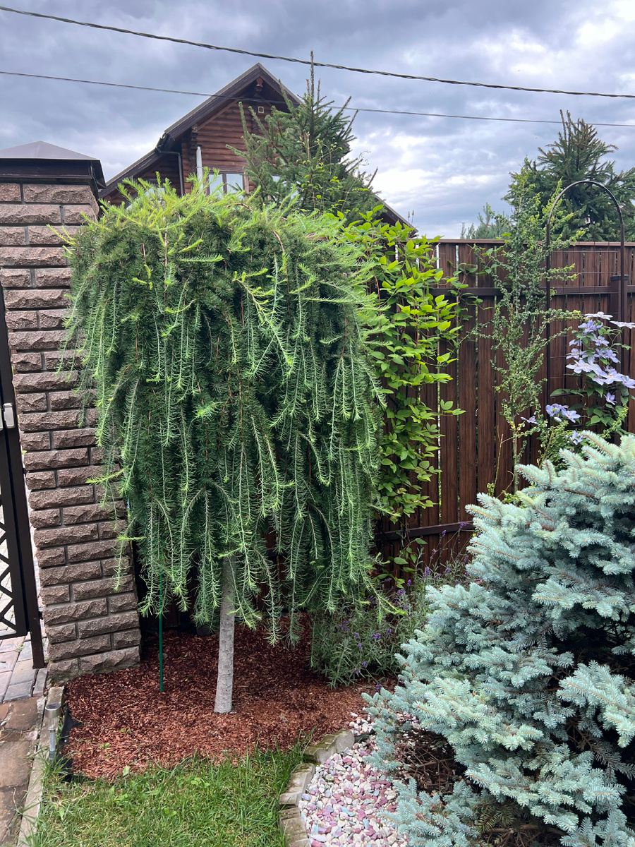 Недавно я показала вам и рассказала какие лиственницы растут в моем саду. В основном необходимо формировать лиственницы плакучей формы - Стифф випер, Пули, Пендулу и даже Диану. В принципе, все очень просто. Любое дерево, деревце будет выполнять свою миссию и расти до положенной ему высоты, тоже самое с ветками у лиственниц и других деревьев, они будут расти в длину сколько им положено. Наша задача, вернее даже желание сделать лиственницу пышной и объемной, поэтому необходимо прервать рост веток в длину и заставить их выпускать боковые ветки, будить спящие почки, которые расположены по всему побегу Конечно же лучше всего отламывать или отстригать молодые приросты, пока они еще не одеревенели, но если пропустили можно в августе постичь длину и вот эти боковые побеги будут расти в стороны загущая деревце. Особенно, когда это делаете наверху лиственницы Когда лиственница уже взрослая формировать можно в любое время. Я уже раза три подровняла длину, растет очень быстро. Но кардинально, нап
