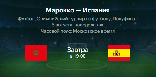 Турнирное положение: марокканцы заняли первое место в группе, а потом легко прошли 1/8 финала. Последние матчи: на групповом этапе сборная Марокко набрала шесть очков в трех матчах. В первом туре представитель Африки на этом футбольном турнире одержал победу над Аргентиной (2:1) и разгромил Ирак после поражения от Украины. В первом раунде плей-офф марокканцы не оставили шансов сборной США — 4:0. Не сыграют: из-за дисквалификации предстоящий матч пропустит полузащитник Билал Эль-Ханнус. Состояние команды: успешное выступление сборной Марокко не стало сюрпризом. По составу это очень приличная команда, в чем смогли лично убедиться даже аргентинцы. Турнирное положение: испанцы заняли второе место в группе, а потом тоже без проблем прошли 1/8 финала. Последние матчи: на групповом этапе Испания обыграла сборные Узбекистана и Доминиканской Республики, после чего уступила Египту. Но уже в 1/8-й испанцы разгромили Японию (3:0) и подтвердили, что с ними все в порядке. Просто в предыдущих мат