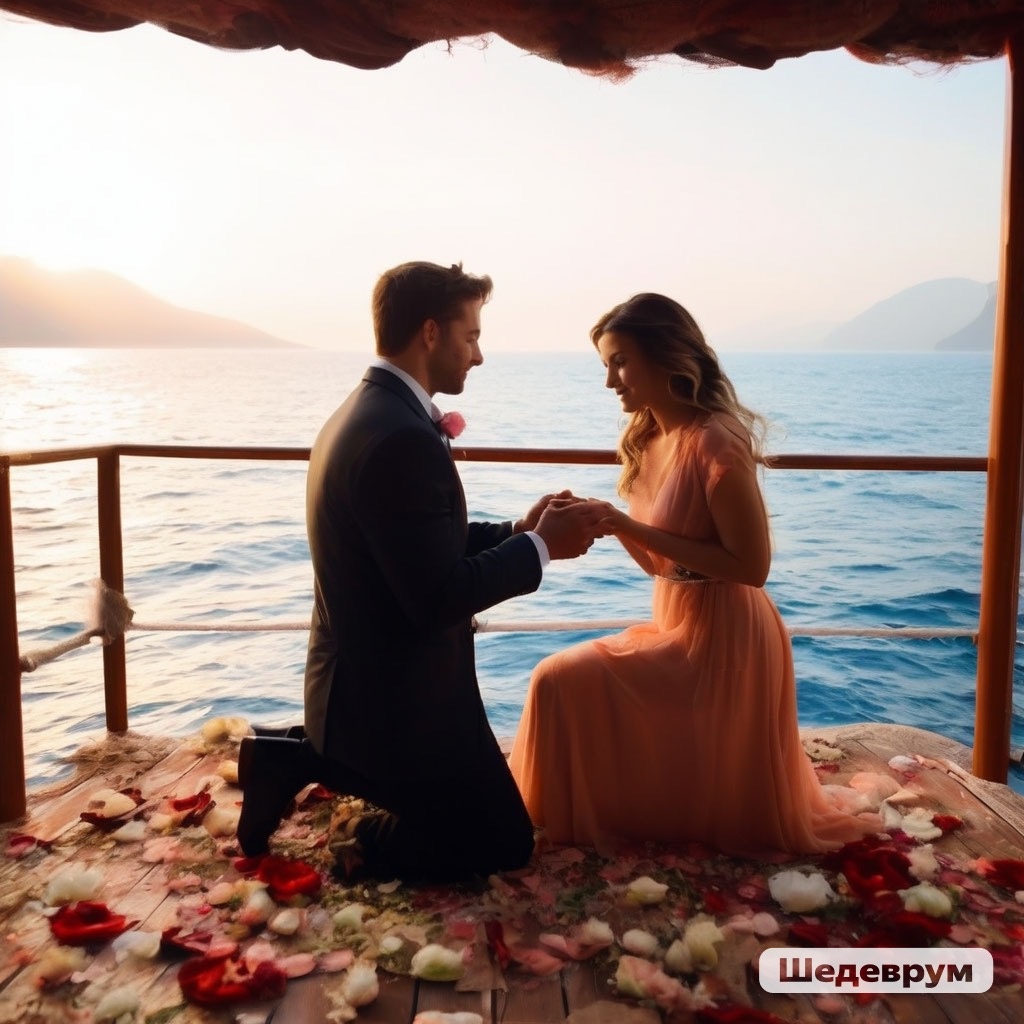 Однажды, во время одного из таких вечеров, Миша решился на важный шаг. Он подготовил небольшой сюрприз: собрал ракушки и сделал из них украшение. На закате, когда солнце погружалось в море, он встал на одно колено и с трепетом в голосе сказал: "Маша, ты — самая важная часть моей жизни. Хочешь ли ты быть со мной всегда?"