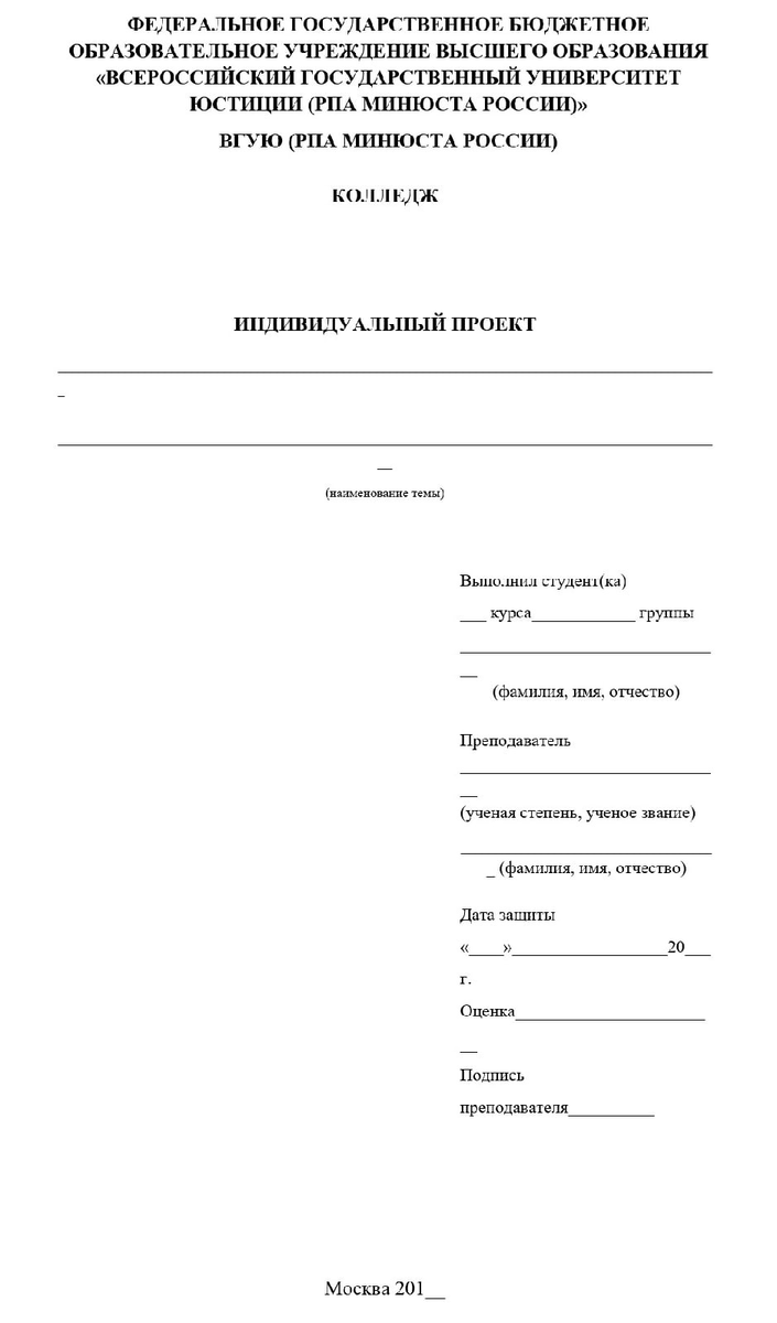 Титульный лист является первой страницей работы и заполняется по образцу.