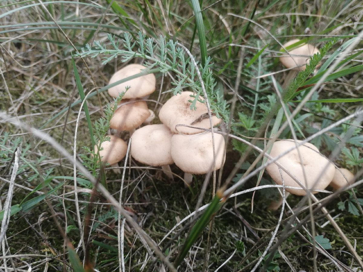 Прямо около футбольных ворот, на плотно утоптанном песке с редкими вкраплениями низкой травы, обнаружены дождевики.