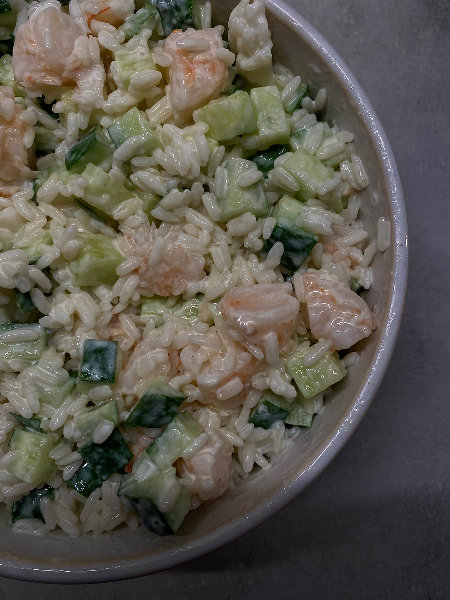 Приветствую всех любителей вкусной и здоровой пищи! 🥬🍤🥗 Сегодня я хочу поделиться с вами рецептом замечательного салата, который сочетает в себе морепродукты, овощи и злаки. Это блюдо не только вкусное, но и полезное, ведь оно содержит множество необходимых организму веществ. Салат с креветками, огурцами и рисом - это отличный выбор для тех, кто следит за своим здоровьем и хочет питаться правильно. Он легко готовится и может стать прекрасным дополнением к любому приему пищи. Вам понадобится: ➰400 г очищенных креветок ➰100 г риса ➰2 свежих огурца ➰2 столовые ложки сметаны ➰1 ч.л. горчицы ➰соль, по вкусу Приготовление: 1. Отварите рис до готовности. 2. Креветки отварите в подсоленной воде. Нарежьте кубиком. 3. Огурцы помойте, нарежьте кубиком. 4. Рис смешайте с креветками и огурцами. 5. Добавьте сметану, горчицу, посолите. 6. Перемешайте и подавайте к столу. Пусть каждое ваше блюдо станет не просто рецептом, а настоящим произведением искусства, которое собирает за