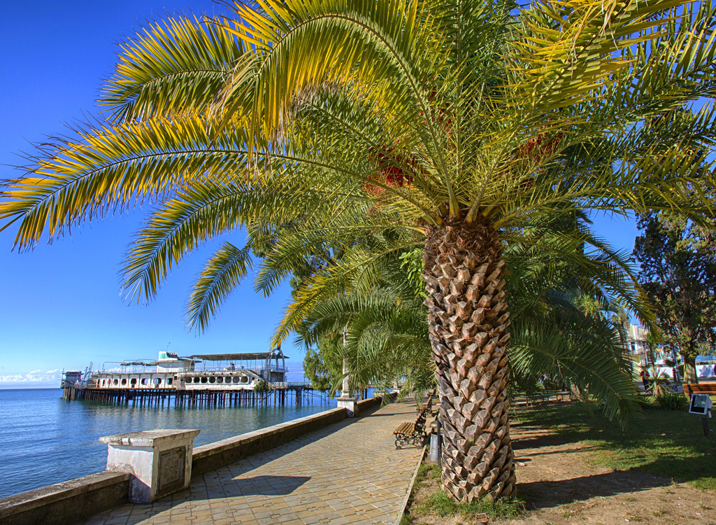 Прекрасная Гагра – популярный курорт в Абхазии для семей с ребенком. Здесь царят ароматы эвкалиптов, а бухта Чёрного моря окружена пальмами и кипарисами. Горы приближаются к побережью, создавая живописные пейзажи, особенно в Старом городе.