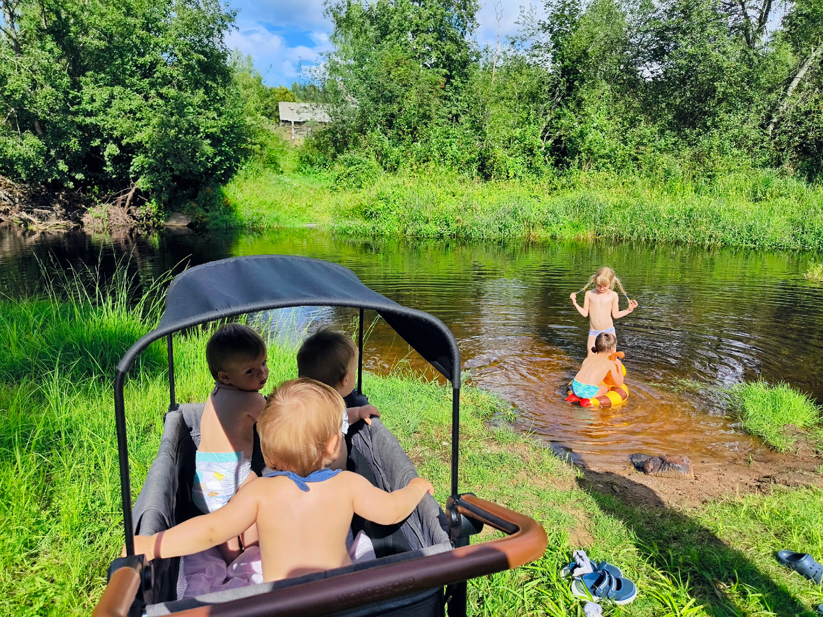 Приветствую вас, дорогие мои читатели 🤗! У тройняшек и Леона событие, к ним в гости приезжала тетя Вика (моя сестра) с дочкой Анечкой. Наши встречи сейчас большая редкость, потому что не так-то просто до нас добраться. Нам повезло с погодой и мы смогли искупать старших детей на речке. Погонять чаи с деревенским пирогами и городскими булками 😄. Прогуляляться по деревне большой компанией Обойти все детские площадки Недавно я нашла архивное фото 1994 г., где мы с сестрой играем в куклы у забора на даче. Так захотелось повторить! Сделали фото на том же месте, только забор теперь другой и куклы уже не те 🙈, за ними глаз да глаз 😆. Но суть игры осталась прежней: пой песенки, качай, люби, только теперь все по-взрослому 😎. У нас с сестрой разница в возрасте 1 год и 2 месяца. Помню как в детстве меня мама учила отвечать на частый вопрос: вы двойняшки? Надо было говорить: мы погодки. Что это значит я тогда не особо понимала. У меня не было ощущения, что сестра старше меня. Я родилась, а о