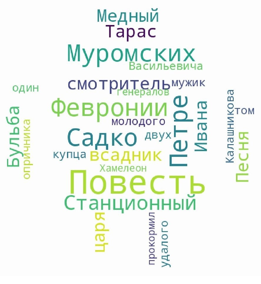 Задания разработаны по следующим произведениям: 1. Повесть о Петре и Февронии Муромских 2. Былина «Садко» 3. А.С.Пушкин «Станционный смотритель» 4. А.С.Пушкин «Медный всадник» 5. Н.В.Гоголь «Тарас Бульба» 6. М.Ю.Лермонтов «Песня про царя Ивана Васильевича, молодого опричника и удалого купца Калашникова» 7. М.Щедрин. Сказки 8. А.Чехов «Хамелеон» Задание 1. Используя подсказки из облака тегов, назовите произведения, которые вы читали летом: Задание 2. Ответьте на вопросы викторины: 1. Как называется произведение, в котором рассказывается о девушке, сумевшей вылечить князя (Повесть о Петре и Февронии Муромских) 2. Поясните слова Февронии: «Отец и мать пошли взаймы плакать, а брат ушел сквозь ноги смерти в глаза глядеть» (Отец и мать пошли на похороны и там плачут, а когда они помрут, другие над ними плакать будут: значит, сейчас они свои слезы взаймы проливают. Брат ушёл бортничать, залезет на дерево как можно повыше и вниз поглядывает, как бы не сорваться, ведь кто сорвался, тому конец!)