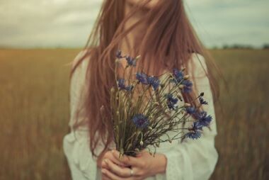 За спиною — рожью поле, синим взглядом васильки,