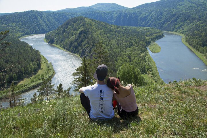 Это, как бы, уже не совсем Красноярск, но всё же до неё добраться сравнительно не сложно. Старт маршрута начинается неподалёку от посёлка Усть-Мана, расположившимся между Красноярском и Дивногорском. И туда можно легко доехать на машине или электричке. Почему манская и почему петля? Потому что у нас есть река Мана и она течёт, извиваясь словно змея, среди сибирских гор и равнин. А вот там где она особенно изгибается, она становится похожа на петлю. Вот и всё объяснение. Над названием никто особо не мудрил. Сейчас там тоже есть лестницы, которые сильно упрощают подъём. Раньше он был довольно... заковыристым. Натянутые между деревьями верёвки и всё вот это, придающее таким походам особый "шарм". Но природа, конечно, просто потрясающая. И сам маршрут начинается вдоль реки. И при подъёме - чем выше поднимаешься, тем сильней начинает захватывать дух от местных красот. Кадр отсюда даже попал на заставку фильма "Угрюм-река", хоть он тут и не снимался. Но сложно спорить с их выбором, место