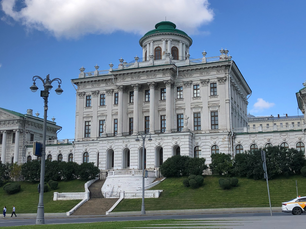 Этот дом очень фотогеничен: он так и просится на фото. Трудно удержаться и не сфотографировать, когда проходишь мимо. И снимать его можно бесконечно. У этого здания два фасада: один – парадный, дворцовый – с портиком и колоннами – выходит на Моховую и с высоты Ваганьковского холма смотрит на Кремль:
