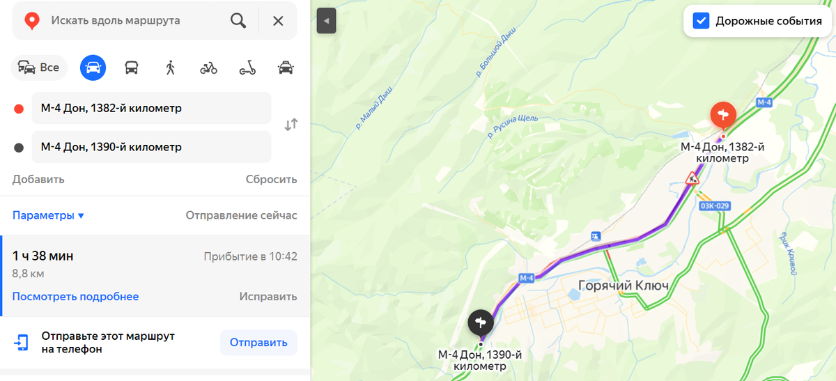 Первая пробка традиционно встречает автомобилистов у Горячего Ключа: от заправки «Газпромнефть» до скалы Петушок. К 09:25 длина затора достигла практически 9 километров. Здесь водители потратят не менее 1 часа 40 минут, следует из данных "Яндекс Карты". Пробки в районе Горячего Ключа к Чёрному морю Миновав станицу Пятигорскую, туристы попадают уже во вторую – 16-километровую пробку перед Молдавановкой. Машины стоят с 1397-го километра М-4 «Дон» по 1412-й километр трассы. На преодоление красного (плотные пробки) и оранжевого участка пути (небольшие затруднения в движении) потребуется около 1 часа 15 минут. Пробка перед Молдавановкой Пробки в обоих направлениях наблюдаются также в районе Джубги и поселка Новомихайловского. Пробки перед курортами Краснодарского края Полыхает дорога бордовым и в районе Шепси. Читайте нас в Telegram