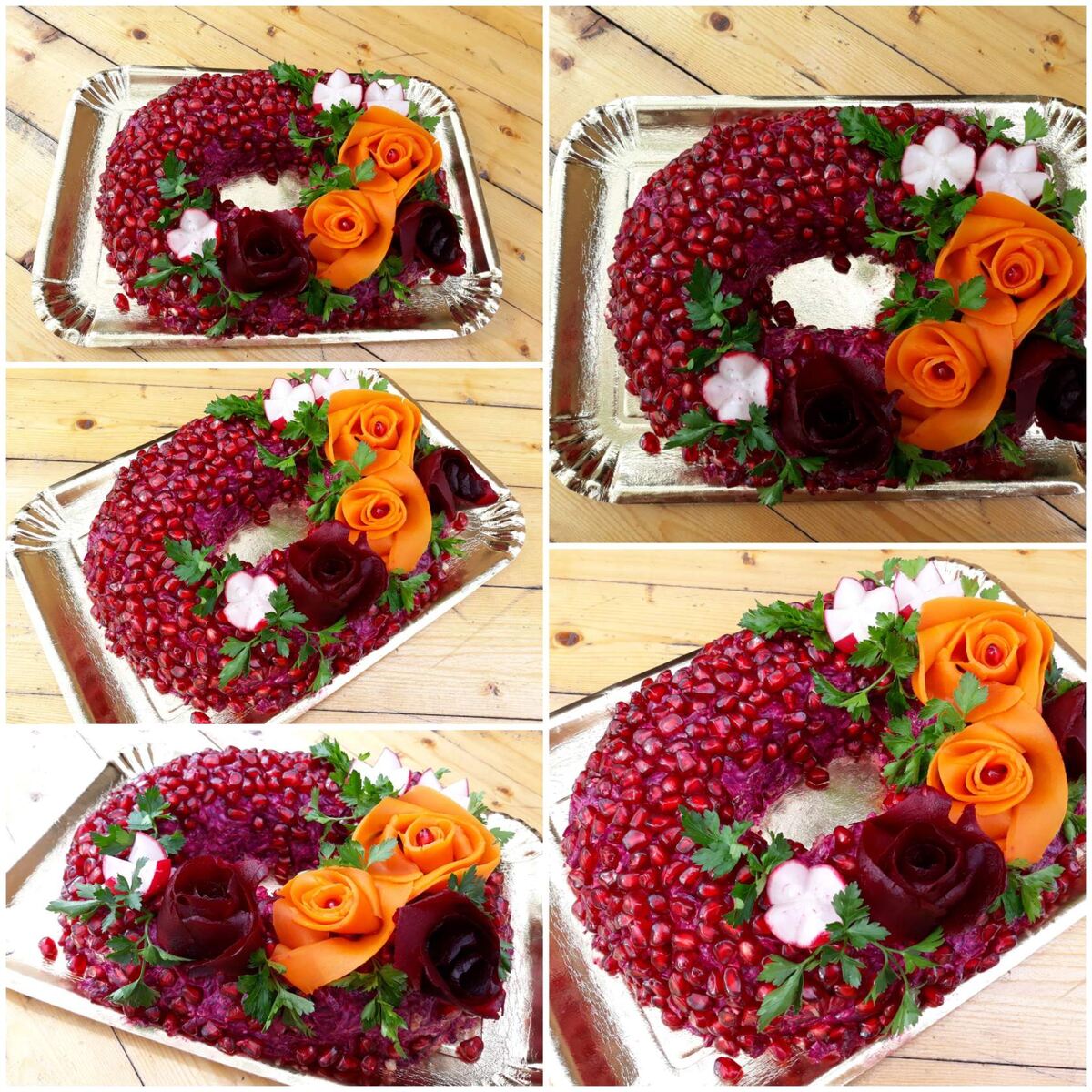 Доброе утро, уважаемые подписчики и гости канала❤ Сегодня делюсь с вами рецептом салата " Гранатовый браслет".У многих своё прочтение салата, я его готовлю двумя способами.( с отварной грудкой, или с обжаренной) Сегодня будет рецепт с обжаренной куриной грудкой. Гранатовый браслет. Картофель -2 шт. Куриная грудка -1 шт Лук-1 шт Орехи грецкие-100 гр Свёкла -1-2 шт средние. Морковь-1 шт Майонез -180-200 гр Соль, перец- по вкусу. Гранат-1 шт. Всё овощи отварить, очистить, натереть на крупной терке. Лук нарезать кубиком, немного обжарить и добавить куриную грудку( порезанную мелким кубиком). Всё обжарить до готовности, остудить. Гранат очистить, разобрать на зёрнышки. Собираем салат! На плоское блюдо ставим по центру стакан/ банку. Начинаем выкладывать слои вокруг банки, формируя круг. Первый слой- картофель( сверху майонез). Второй слой- обжаренная с луком грудка( сверху майонез) Третий слой - морковь Четвёртый слой- грецкие орехи( измельчить на ваш вкус, сверху сеточка из