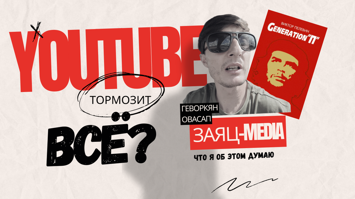 Друзья, хочу поделиться с вами интересной мыслью. В последнее время многие из нас заметили проблемы с понижением скорости и качества видеоконтента на YouTube в России. Это явление вызывает множество вопросов о причинах и последствиях таких изменений. Интересно, что подобные темы манипуляции сознанием и влияния медиа на общество были рассмотрены в книге "Generation П" Виктора Пелевина. Давайте проведем параллели между сценами из романа и текущей ситуацией на YouTube, чтобы глубже понять социальные и философские аспекты этих явлений.