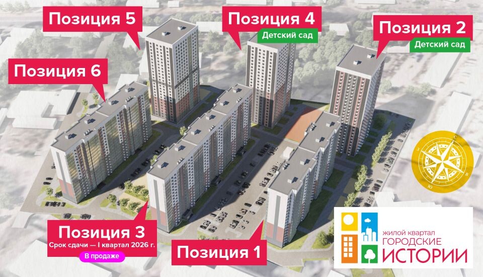 Жилой комплекс «Городские истории» включает в себя шесть домов: три 25-этажные башни в панельном исполнении и три 17-тиэтажные здания.