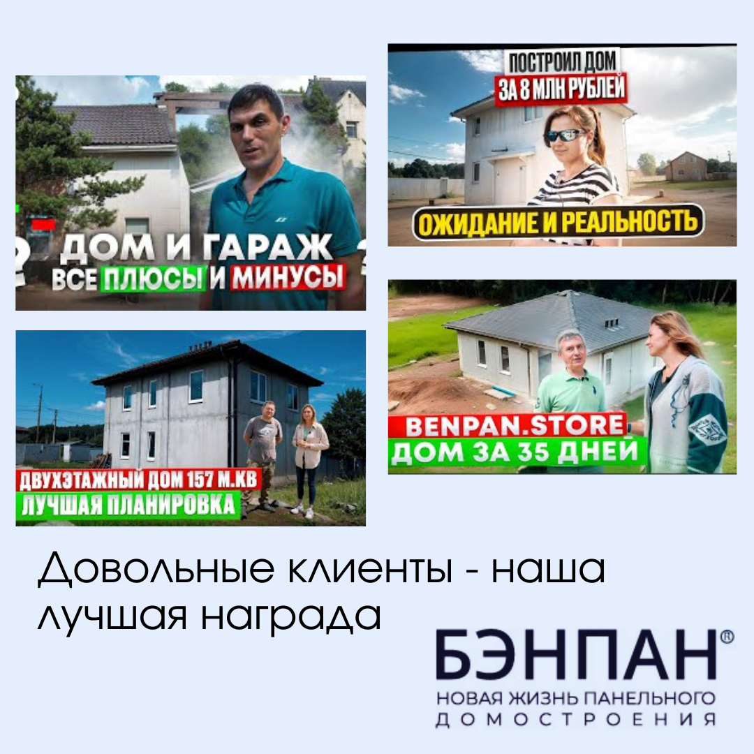 Мы гордимся каждым проектом, который реализуем, и еще больше радуемся, когда наши клиенты делятся своими положительными отзывами! 😍 Хотите узнать, что говорят о нас наши заказчики? Заходите на наш YouTube-канал и посмотрите видеоотзывы! Там вы увидите реальные истории людей, которые доверили нам строительство своей мечты: 🔸ШОК! ПОСТРОИЛ ДОМ ЗА 5 МИЛЛИОНОВ! Наблюдал в камеры как строят дом на протяжении месяца https://youtu.be/Wh_M_hI2EHw/?utm_source=yadzen 🔸Долго не думали и построили спонтанно загородный дом! Что из этого получилось? https://youtu.be/Xd6lNv_-0jM/?utm_source=yadzen 🔸ШОК! ПОСТРОИЛ ДОМ ЗА 5 МИЛЛИОНОВ! Наблюдал в камеры как строят дом на протяжении месяца https://youtu.be/Wh_M_hI2EHw/?utm_source=yadzen 🔸2-ЭТАЖНЫЙ ЗАГОРОДНЫЙ дом 157м² за 45 дней – ВЫ СЕРЬЕЗНО?! СОСЕДИ будут вам ЗАВИДОВАТЬ! https://youtu.be/_H8GyCfhBbw/?utm_source=yadzen 🔸ТАКОГО БОЛЬШОГО ДОМА МЫ ЕЩЕ НЕ СНИМАЛИ! Двухэтажный дом из ЖБ панелей https://youtu.be/BRSurpjCDXo/?utm_source=yadzen Мы уверены, ч