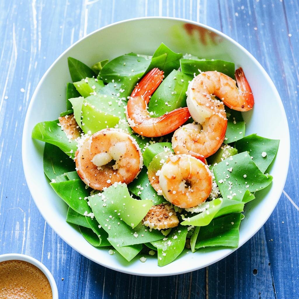 Цезарь с креветками - это изысканное блюдо, которое сочетает в себе свежий вкус креветок и классический аромат Цезарь-салата. Рецепт может варьироваться в зависимости от предпочтений, но обычно он включает в себя свежие креветки, листья салата, сухарики, пармезан, соус Цезарь и другие ингредиенты. Готовый Цезарь с креветками обычно подают с добавлением свежих трав и лимонного сока для придания освежающего вкуса. Ингредиенты: Для салата: * 1 кг креветок (среднего размера) * 1 головка римского салата (или любой другой салат с хрустящими листьями) * 100 г пармезана (тертого) * 100 г сухарей (для панировки) * 2 зубчика чеснока * 2 ст.л. оливкового масла * Соль, черный перец по вкусу Для соуса: * 1 желток * 1 ч.л. горчицы * 100 мл оливкового масла * 2 ст.л. лимонного сока * Соль, черный перец по вкусу Приготовление: 1. **Креветки:** * Очистите креветки от панциря, удалите кишки (если они есть). * Обжарьте креветки на сковороде с разогретым оливковым маслом (1-2 минут