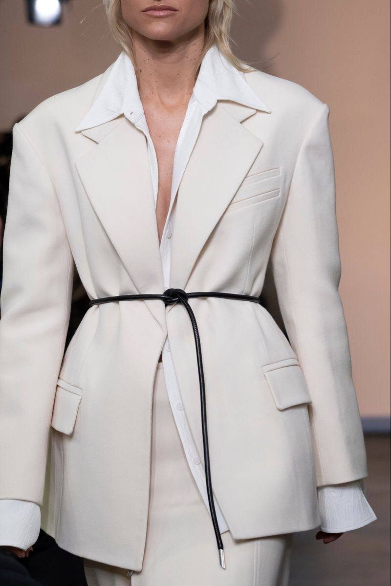 Кстати, не только пиджаки в этом сезоне можно приталивать шнурком, но и пальто, и тренчи. А также просто носить его вместо обычного ремня на джинсах или брюках