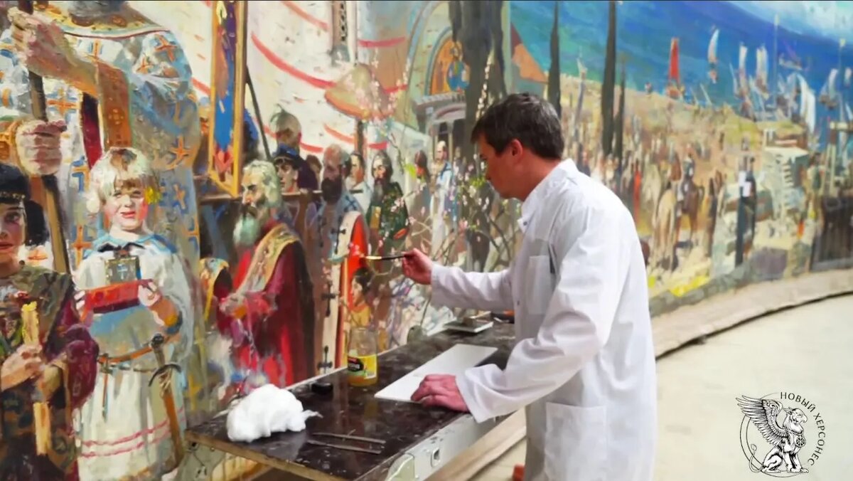 В «Новом Херсонесе» состоится открытие диорамы «Крещение войска князя Владимира в Херсонесе», созданной военными художниками студии имени Грекова. Главным экспонатом Музея Античности и Византии станет живописное полотно художника Павла Рыженко. Об этом сообщает Telegram-канал «Новый Херсонес». Размеры диорамы составляют 35 на 5 метров. На ней изображён исторический момент крещения дружины князя Владимира. Одна из особенностей диорамы — её предметный план, который позволяет зрителю почувствовать атмосферу той эпохи и погрузиться в происходящее историческое событие. Музей Античности и Византии будет новым домом для множества уникальных экспонатов заповедника «Херсонес Таврический». Здание площадью более 24 тысяч квадратных метров предоставит посетителям возможность увидеть богатое археологическое наследие региона. Диорама «Крещение войска князя Владимира в Херсонесе» — это не просто картина; это окно в прошлое великой страны. Благодаря таким произведениям искусства современные поколения