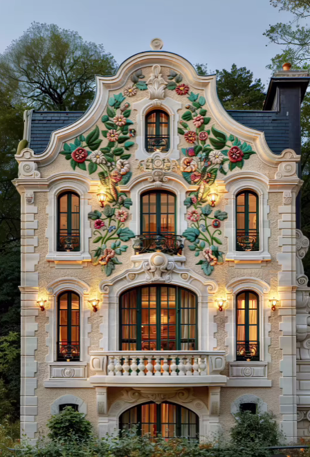 В живописной деревушке на окраине леса стоит этот сказочный дом. Он выделяется среди других, и живет в нем бабушка Аня. Стены дома выкрашены в мягкие пастельные тона и усеяны яркими росписями цветов. Цветы обрамляют центральные окна и балконы фасада, плавно переходя с одного этажа на другой, будто нежно сплетаясь в огромный букет. Внутри дом не менее волшебный, чем снаружи. Каждая комната отражает любовь бабушки Ани к цветам. Мебель кажется ожившей частью сада. Диваны и кресла украшают вышитые подушки с цветочными узорами, а на полках стоят фарфоровые вазы, где всегда свежие полевые цветы гармонично вплетены в интерьер. Даже ванная усыпана яркими изображениями полевых цветов, сделанных на заказ местным умельцем. Зимой бабушка Аня согревается в своем любимом теплом вязаном пальто, украшенном яркими вышитыми цветами. Это пальто стало для нее верной спутницей в холодную погоду. Пальто представляет собой настоящее произведение искусства. Бабушка Аня часто говорит, что, когда ей тепло, паль