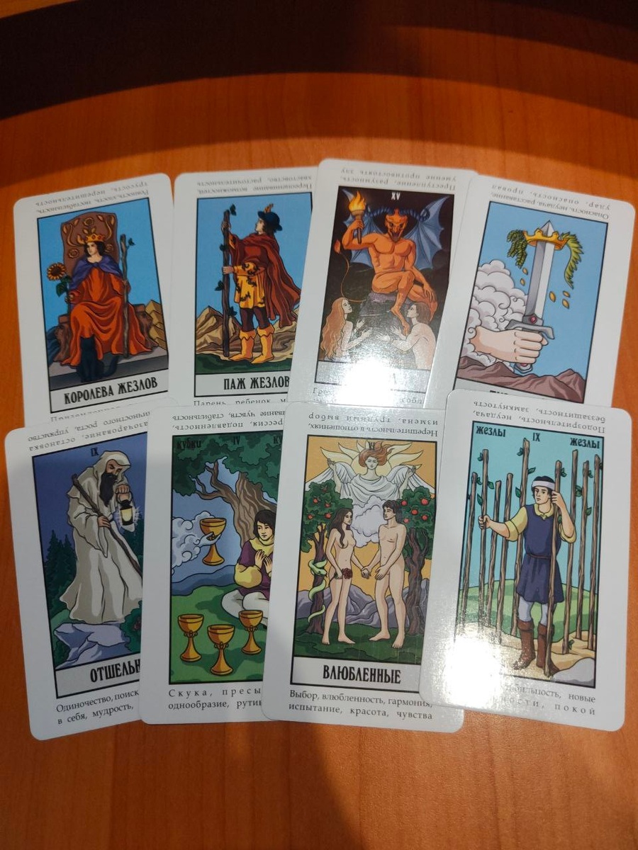 Не можете найти ответ на загаданный выше вопрос? Тогда сейчас посмотрим ответ в этом раскладе👇👇👇 Здравствуйте, дамы и господа! Очень рад видеть вас на своём канале. Новенькие – подписывайтесь и обязательно оставьте свой комментарий, даже негативный, я с удовольствием отвечу на все вопросы; ветераны – продолжайте смотреть меня, оценивать и комментировать, дальше – больше! В этом гадании не будет вариантов ответа, вам не нужно загадывать цифру от 1 до 4, просто настройтесь на получение правдивого ответа и листайте вниз:) Итак, вам выпали карты: Далее, смотрим трактовку, мои хорошие: В августе, мои дорогие, вам важно не попасть в капкан отношений с каким-то пажом жезлов. Это мужчина, который настроен на одну ночь и не более. Дальше он будет тянуть из вас время, деньги, энергию, однако планов касаемо вас у него, конечно же, не будет. Дьявол – ему от вас нужна только близость. Вам важно принять для себя решение уйти в отшельники, то есть намеренно отстраниться от мужчины, чтобы не