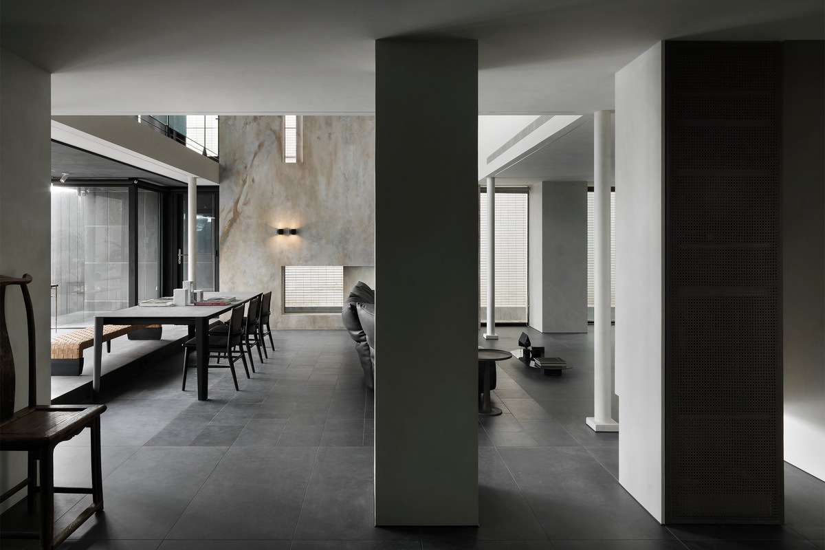 Владельцы дома — это семейная пара и двое сыновей. Муж и жена работают вместе, они глубоко ценят солнечный свет и спокойствие, и они хотели, чтобы их новый дом отражал их любовь к природным ландшафтам. Они хотели, чтобы в доме была открытая гостиная и обеденная зона, высокие потолки и приподнятые переходы, а внешняя часть здания была сделана из черепицы и стекла. Дизайнеры Шон Лин и Саойи Чиен