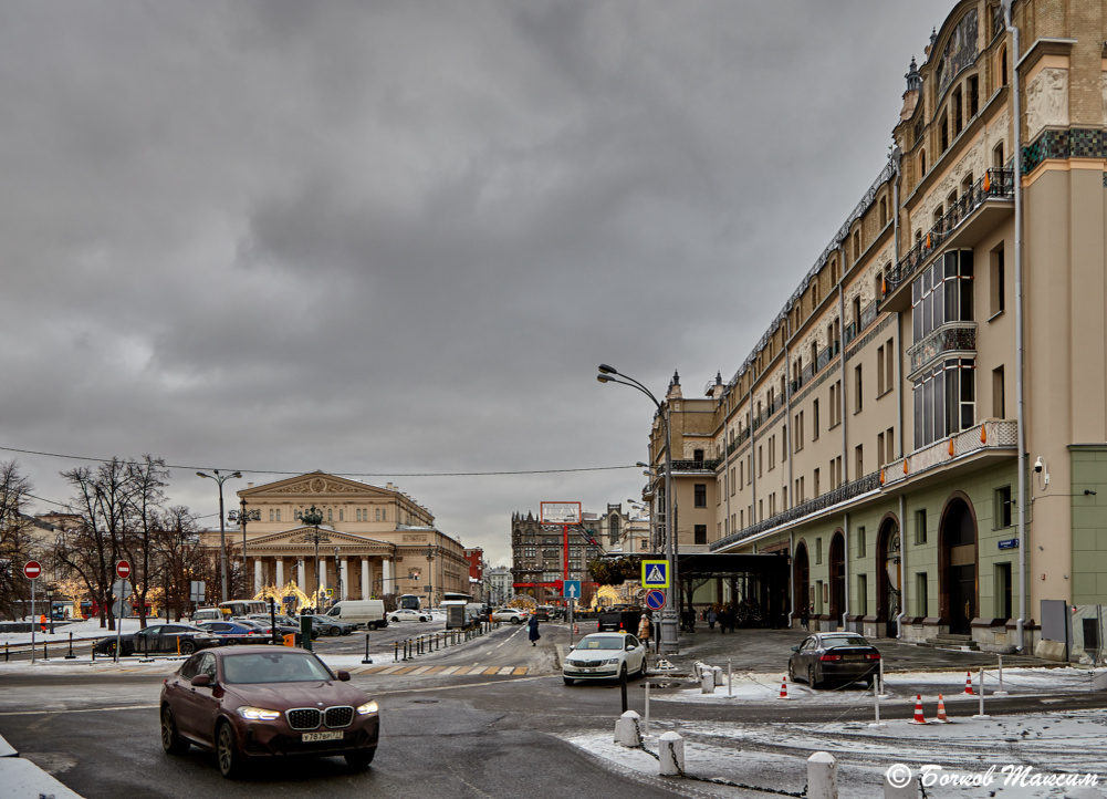 Выйдя на улицу, Андрей закурил, поднял воротник куртки, поправил на плече ремень фото-кофра, глядя на густо опускающийся снег. Вздохнув, посмотрел на улыбающуюся Наташу. Пройдя по улице Горького, спустились в подземный переход и вышли на противоположной стороне у здания Госплана СССР. Пройдя вдоль него вышли на площадь Свердлова. Наташа посмотрела на Андрея разглядывающего здание с монументальной колоннадой и квадригой под управлением Апполона на фронтоне.