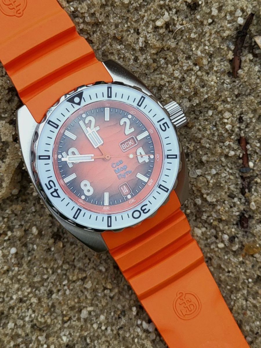 Отсутствие системы быстрой замены ремешка, вкупе с полукруглой конфигурацией примыканий, создаёт в процессе его замены неудобства. Вместе с тем решение добавить две дайверские гармошки по бокам корпуса, визуально увеличивает композицию, делая её немного аляповатой.
