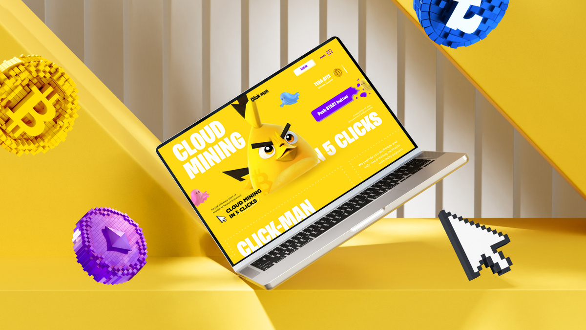 Мы разработали насыщенный геймификацией сервис облачного майнинга Click-man: многостраничный сайт и личный кабинет, вдохновленные игрой Pac-man.