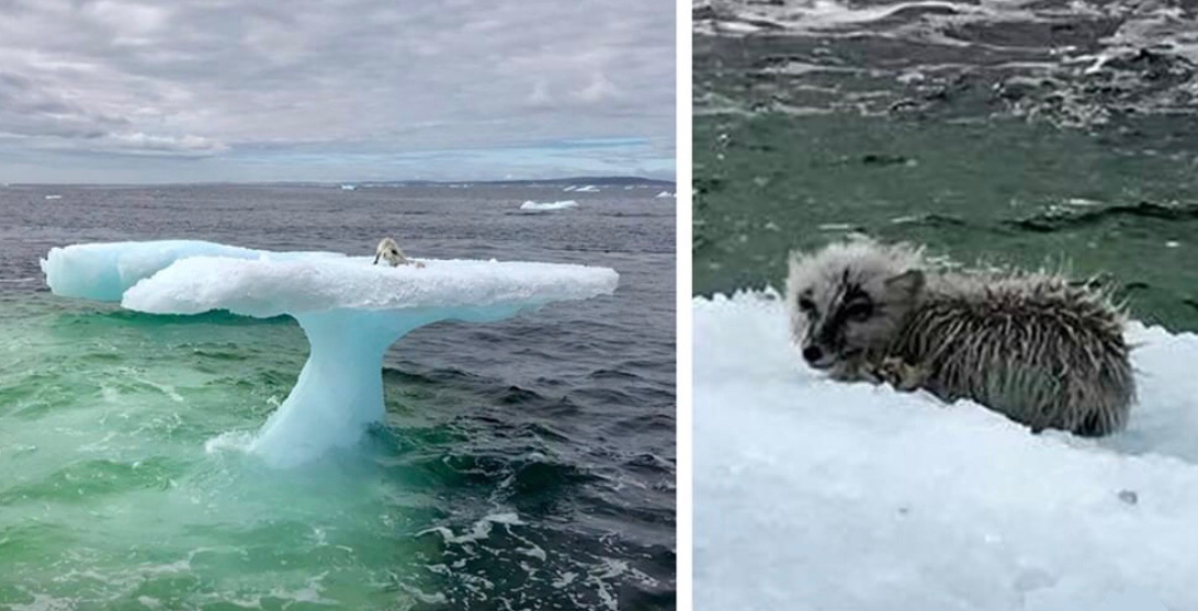 Пушистый зверёк дрейфовал на айсберге. Времени у животного почти не осталось — лёд таял очень быстро