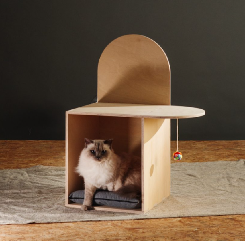 В некоторых конструкциях сиденья сочетаются с лежаками для домашних питомцев внизу, создавая универсальное решение для небольшого пространства. По этому принципу создан предмет Pet-level от Studiomama, который сочетает в себе кресло и место, где кошка может спрятаться, поиграть или посидеть.