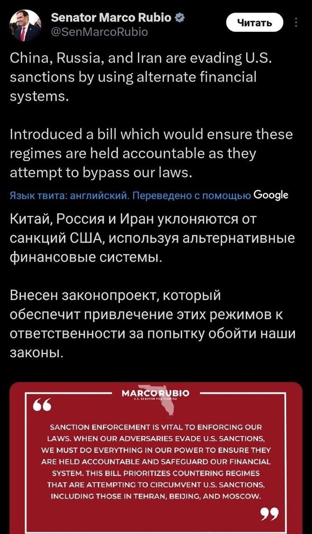 Вот что в голове у этих людей, скажите мне? Режимы будут к ответственности привлекать. К солидарной! А то они уже зарвались, понимаете? Альтернативные финансовые системы создавать вздумали? От санкций уклоняться? Никакой совести у этих режимов нет, и давно пора принимать самые строгие меры. США для чего законы пишут и основывают миропорядок на определенных правилах? Чтобы вы их обходили, да еще и хихикали за спиной в кулак? Не пойдет. Сейчас они примут новый законопроект, который что-то там такое обеспечит, что режимам и в голову не придет пакостничать! Они прямо жестко настроены, я обратила внимание, как та алжирская женщина с Y-хромосомой. Один решающий удар - и все. И этим незамутненным людям даже в голову не может прийти, какую именно фигуру покажут им режимы. Причем фигура может быть как одна, совместная, так и от каждого режима от всей души с душой и в душу. Но США такого отношения к себе не предполагают. А почему, интересно? Наверно, потому что раньше они сталкивались немного