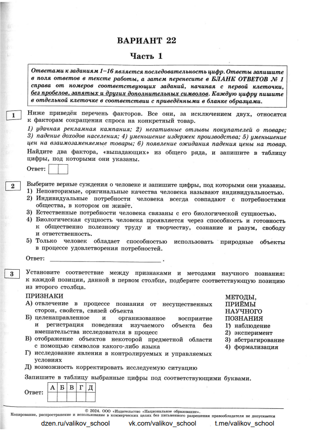 Лискова Котова Обществознание 30 вариантов 2024 года Вариант 22 Ответы