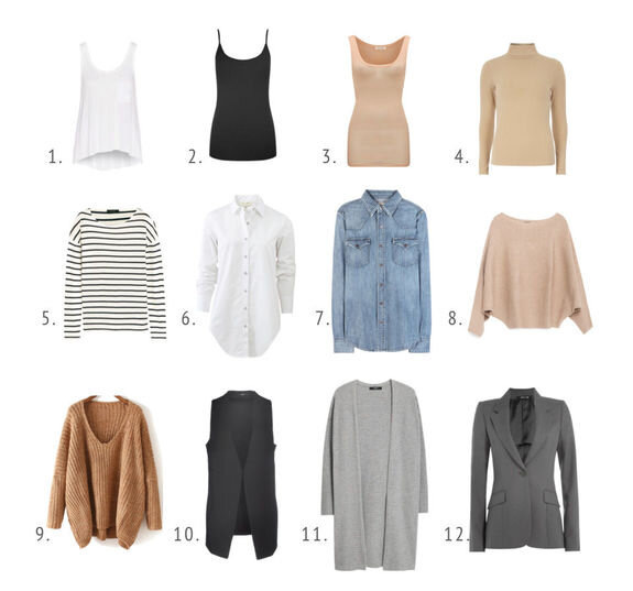 Проблему «нечего надеть» исправить не так сложно. Важно всего лишь правильно собрать свой гардероб. Предлагаем вам список вещей, благодаря которым вы избавитесь от ежедневной нервотрепки по утрам. 1. Майка «алкоголичка» 2. Базовый черный топ 3. Базовый светлый топ 4. Водолазка 5. Тельняшка 6. Белая блузка 7. Джинсовая рубашка 8. Короткий базовый свитшот 9. Объемный свитер10. Жилет 11. Кардиган 12. Жакет нейтрального цвета, приталенный Эти вещи очень удобно комплектуются между собой, позволяя каждый день создавать новый неповторимый образ. Кстати их может быть и больше, но ни в коем случае не меньше. 13. Платье-рубашка 14. Свободное платье или туника 15. Платье футляр 16. Вечернее платье 17. Шелковое платье-сарафан Платьев много не бывает. Пусть они будут разными. Учитывайте особенности вашей фигуры и колорита и сочетайте их с жакетом или кардиганом, создавая то романтический, то деловой образ. 18. Мини-юбка 19. Юбка-карандаш 20. Юбка миди 21. Макси-юбка Такого набора юбок вполне д