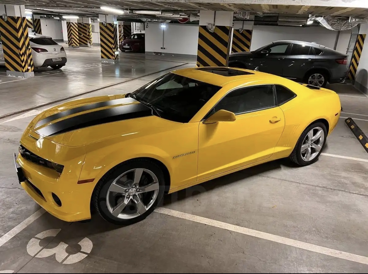 Chevrolet Camaro SS, 5 поколение, выпускался с 2008 по 2016 год, в 2014 году потерпел рестайлинг, двигатель 6,2 литра, 400-426 сил, кпп либо шестиступая механика, либо шестиступый автомат. Стоимость таких машин сегодня в подобном состоянии – около 4-4,2 млн рублей за достойный экземпляр.